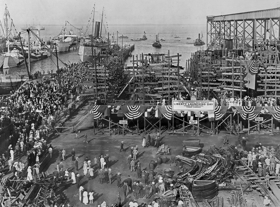 On July 4, or “Liberty Launching Day,” NNS launches three destroyers – Thomas (DD 182), Haraden (DD 183) and Abbot (DD 184).
