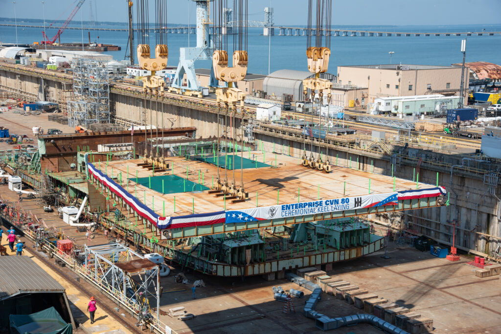 NNS lays the keel for Enterprise (CVN 80), the first aircraft carrier designed digitally and built digitally using visual work instructions on laptops and tablets rather than paper drawings.