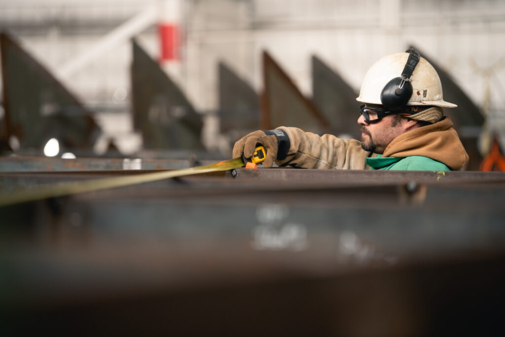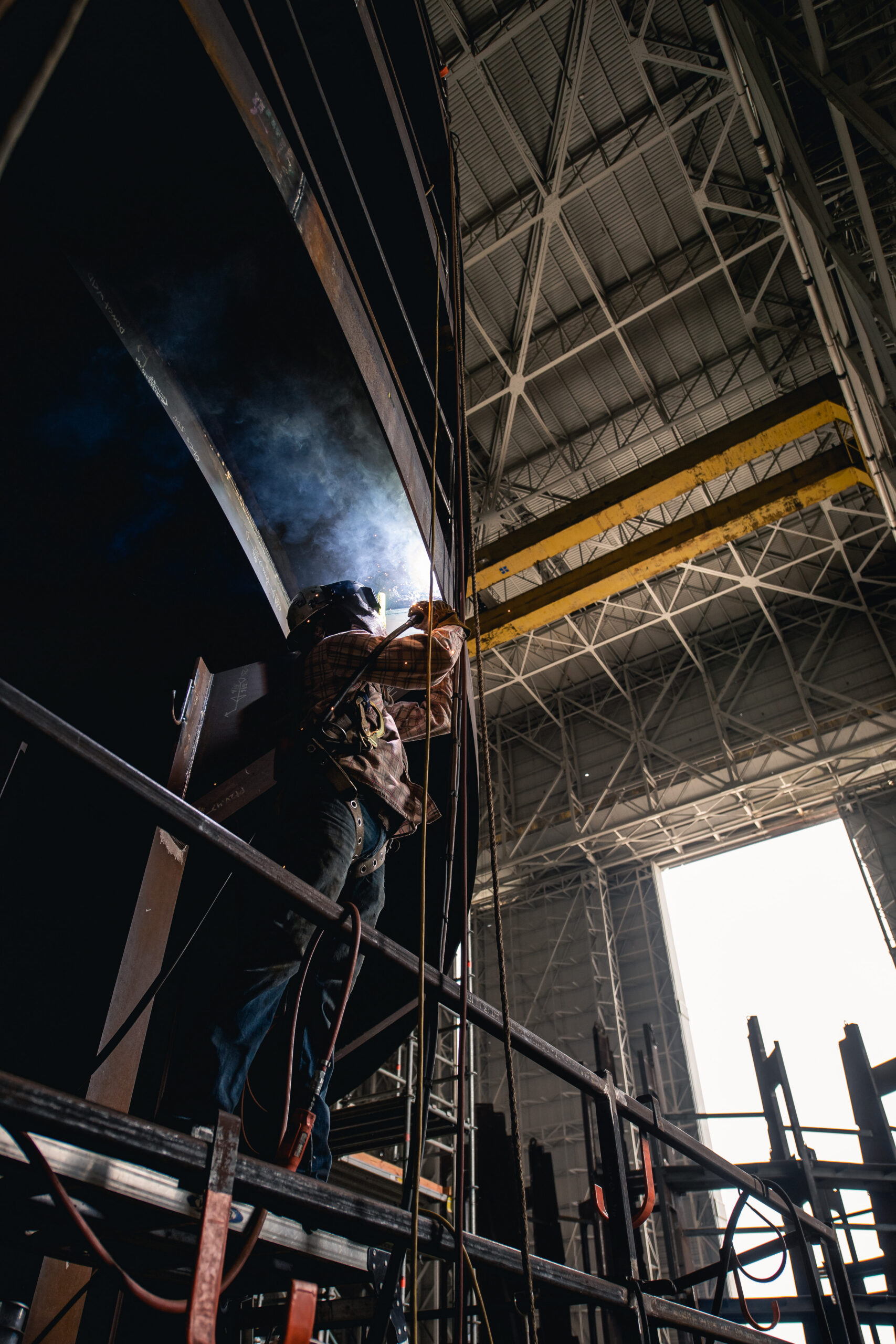 Hayden Clark welds Doris Miller (CVN 81) shell plates.
