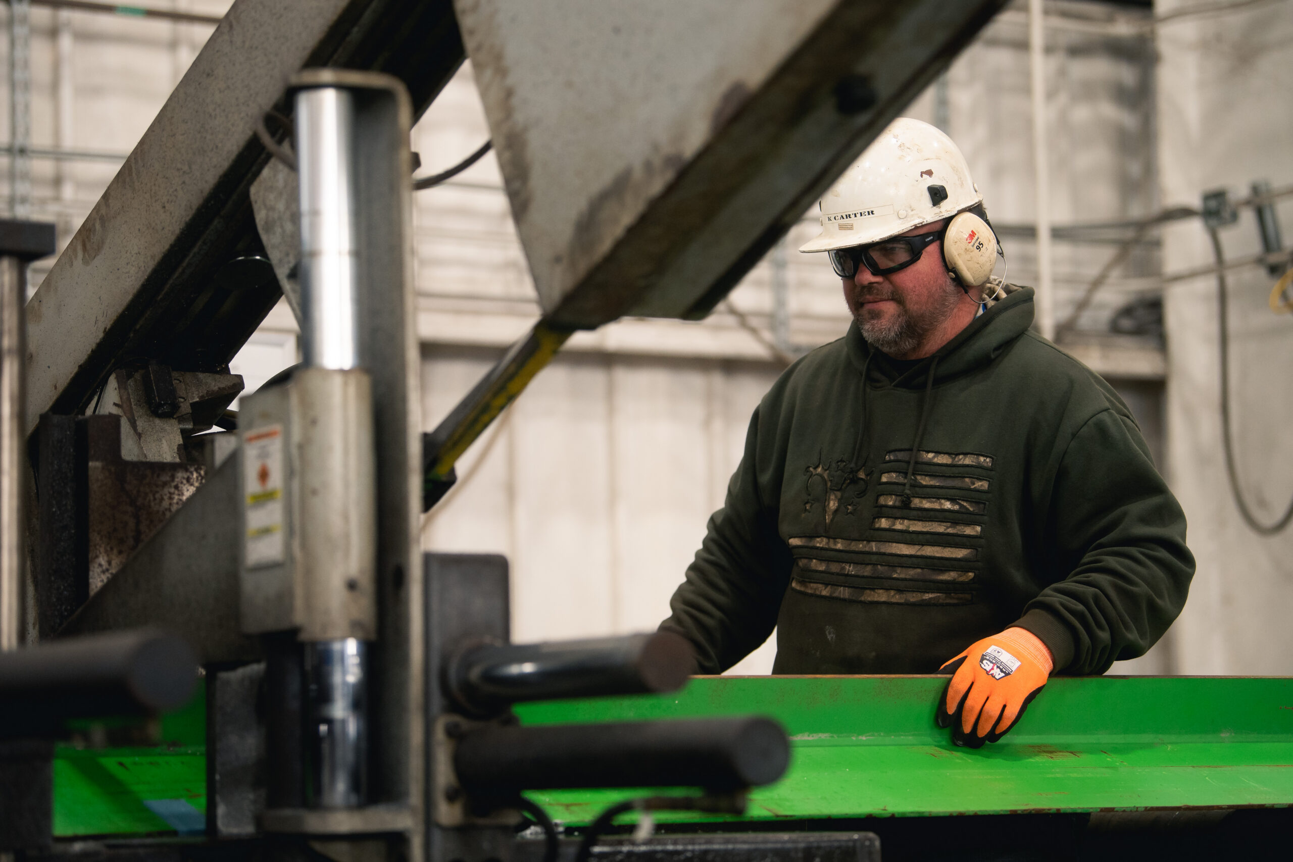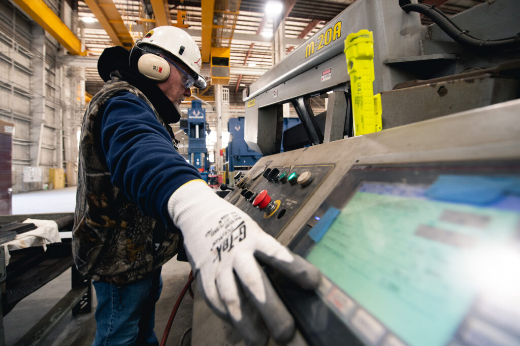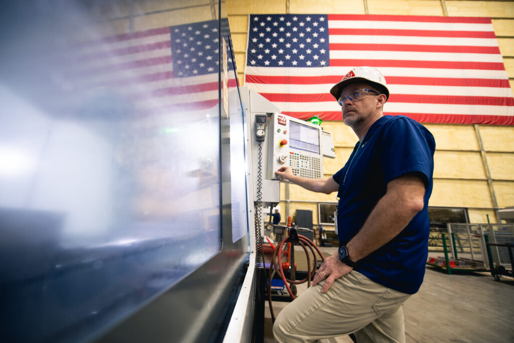 Nate Berkos operates the PAMA machine to machine a center truss for a submarine.