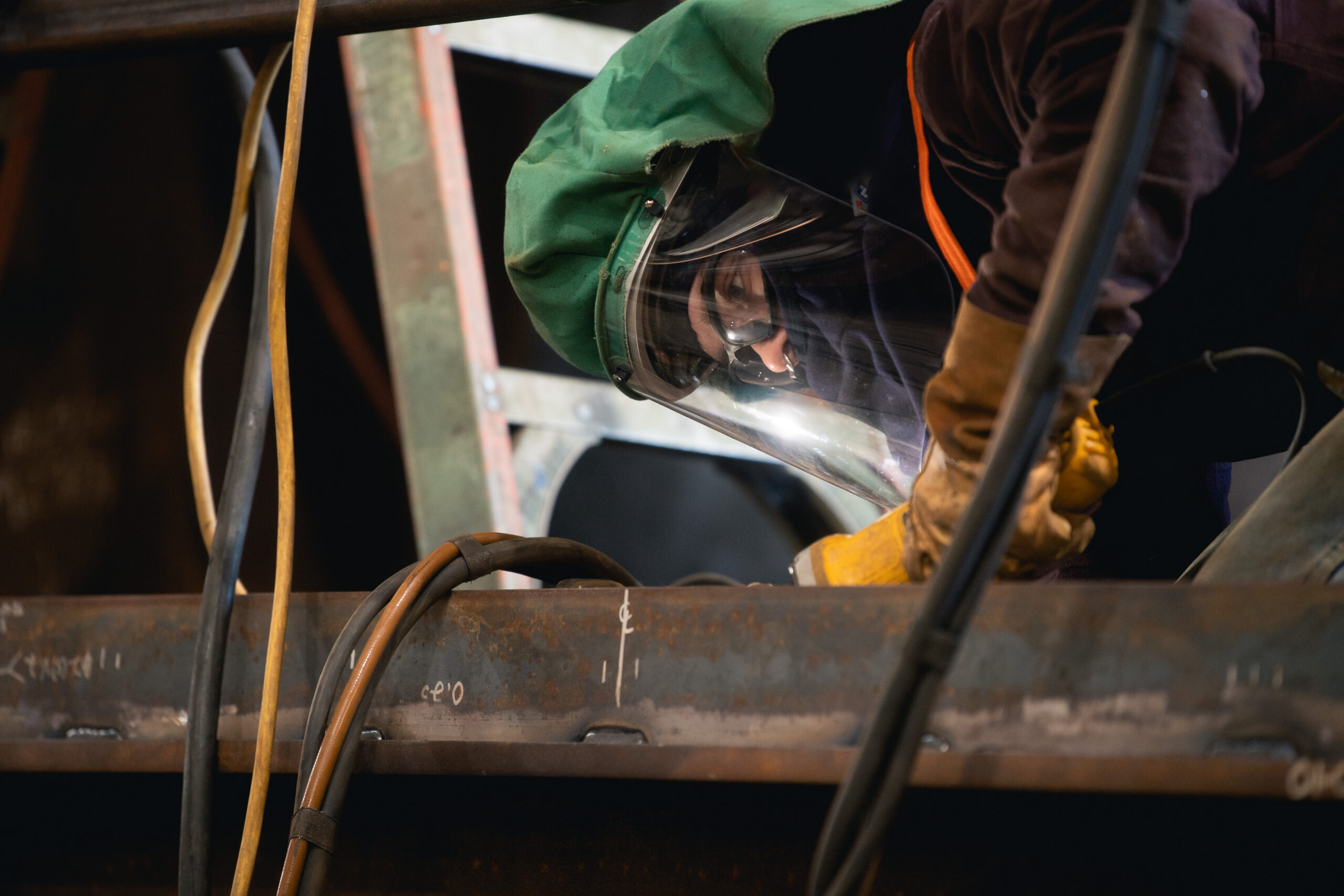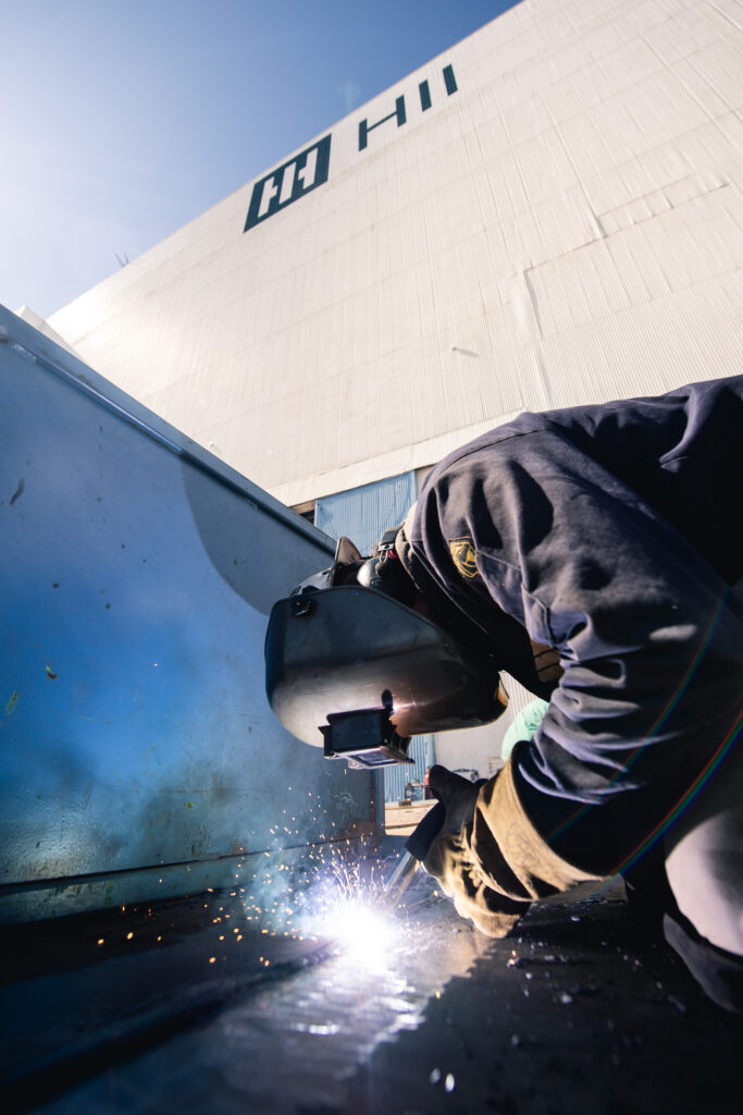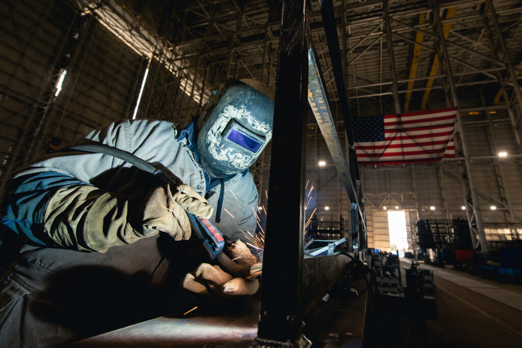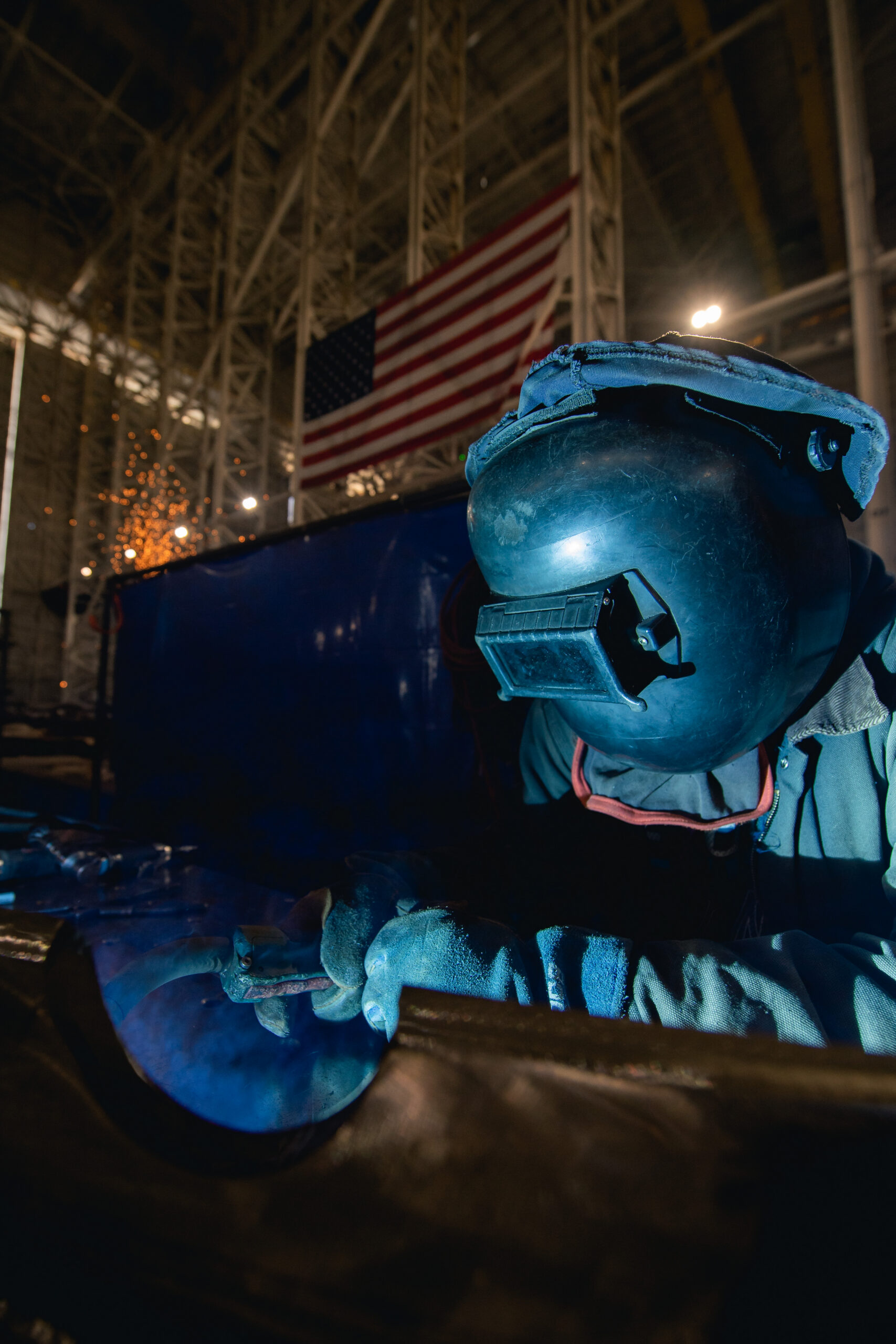 Rickie Manigault welds in an NNS Charleston Operations facility.