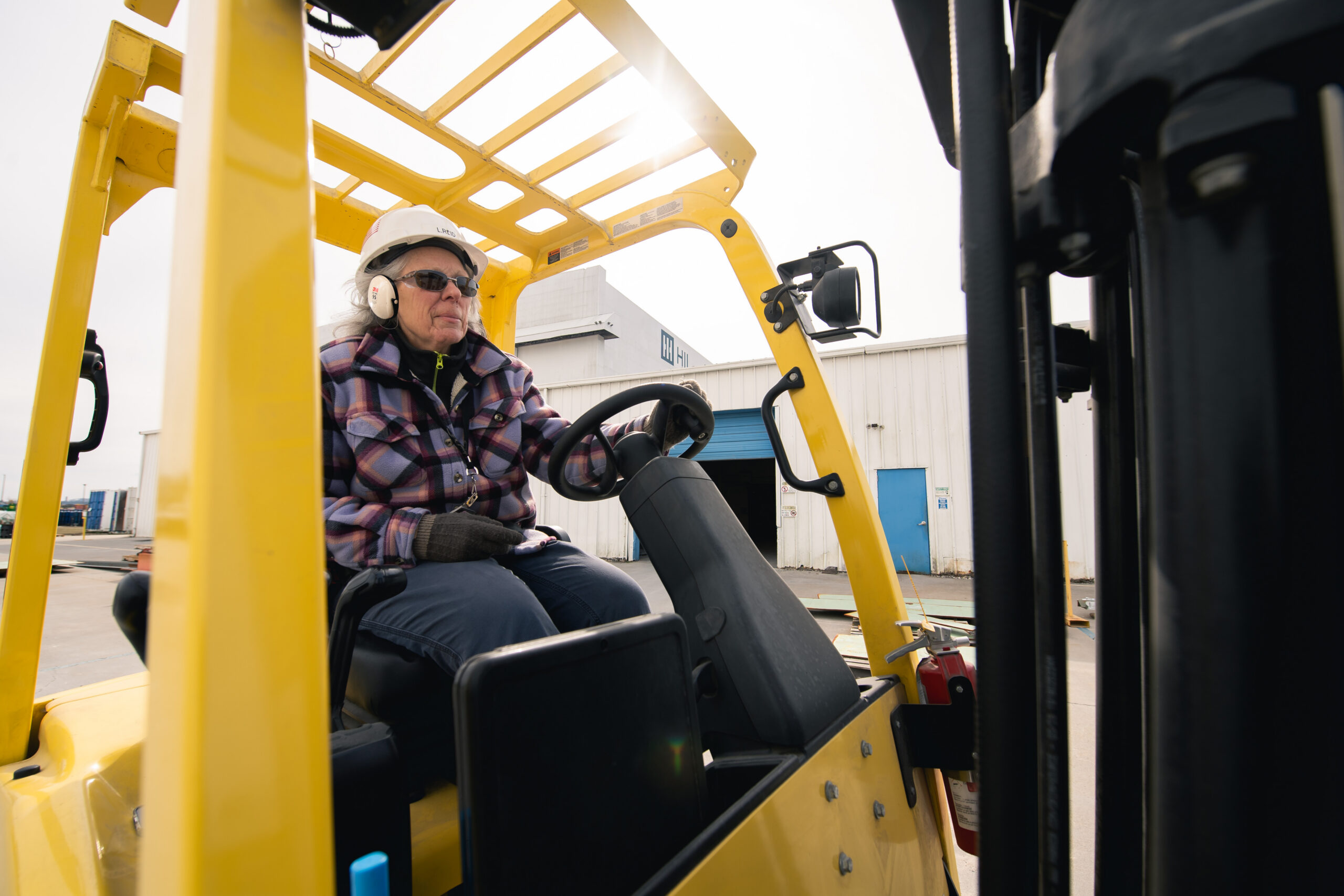 Lydia Reid operates a forklift at Newport News Shipbuilding Charleston Operations.