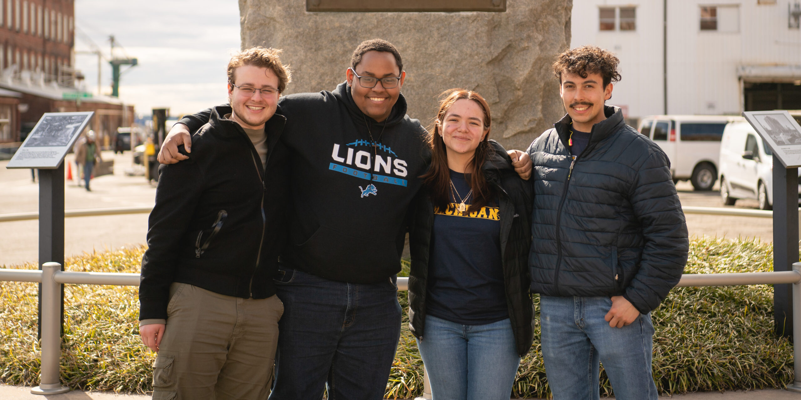 Pictured from left are University of Michigan students Hal Berdichesky, Thomas Brown, Yaneli Gonzalez and Nick O’Donnell. From ‘Go Blue’ to Big Blue: University of Michigan Students Tour NNS