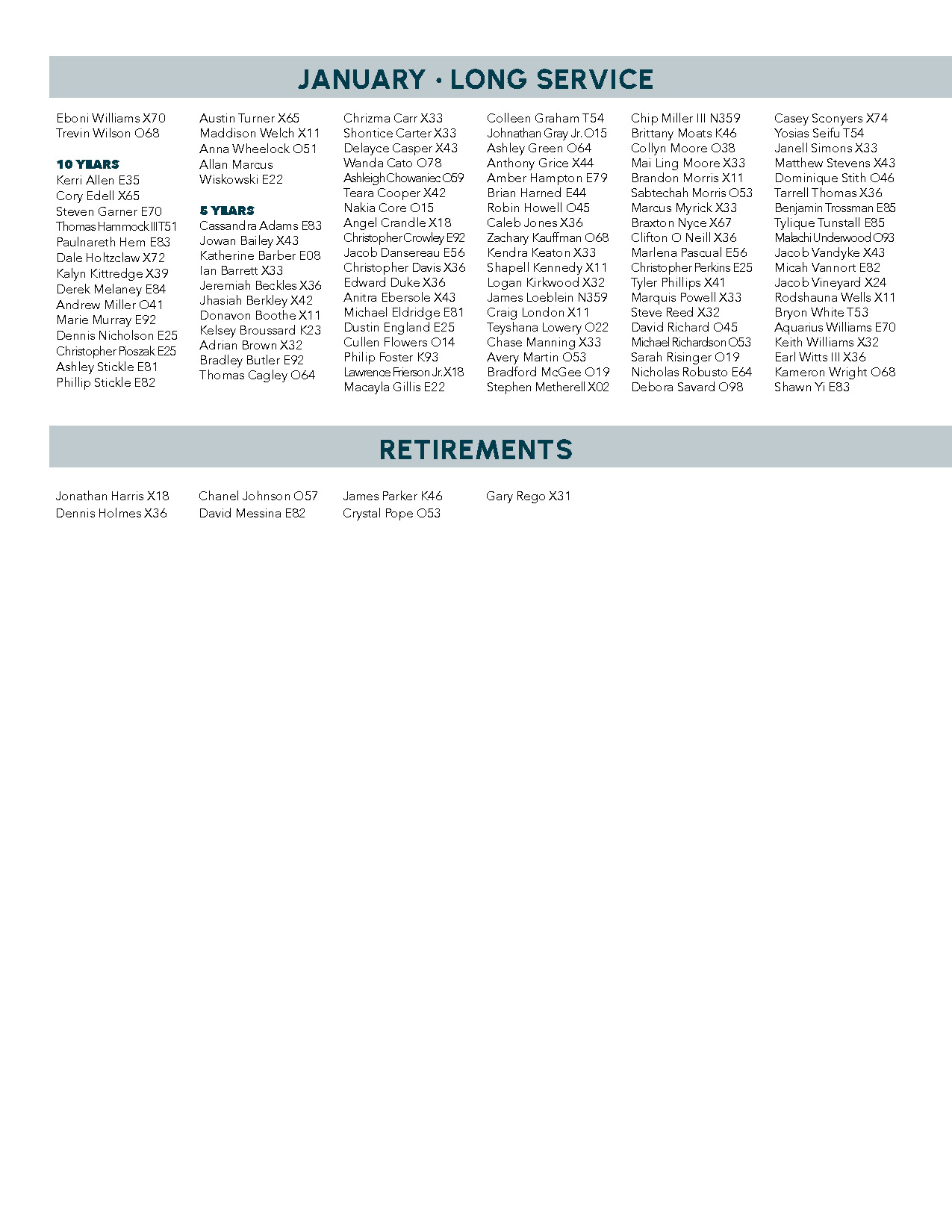 January 2026 Long Service
