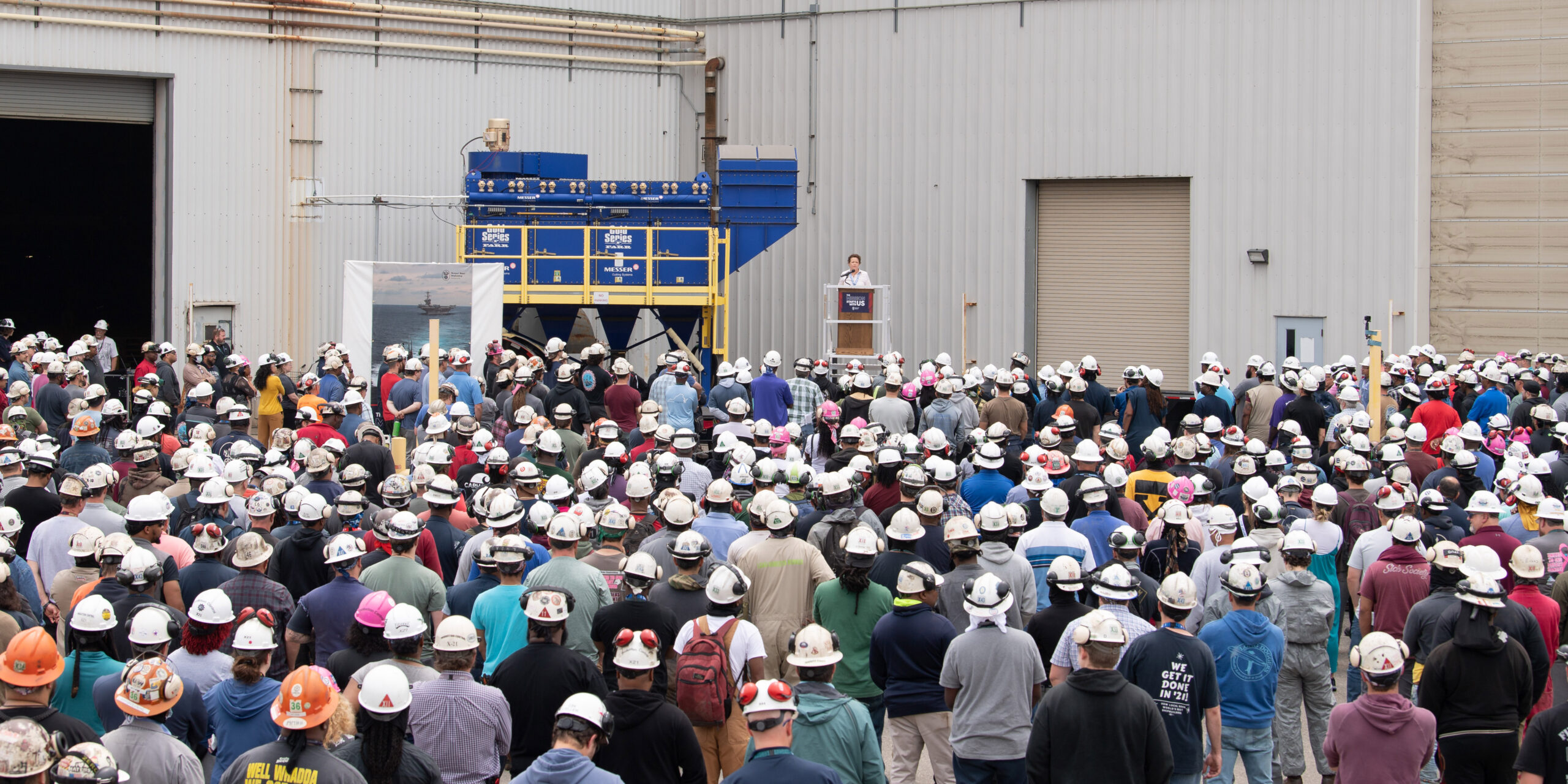 Photo Gallery: Employee Town Halls Published June 12, 2023 See photos from the 2023 Newport News Shipbuilding employee town hall meetings, which were held in locations across the shipyard June 5-9.