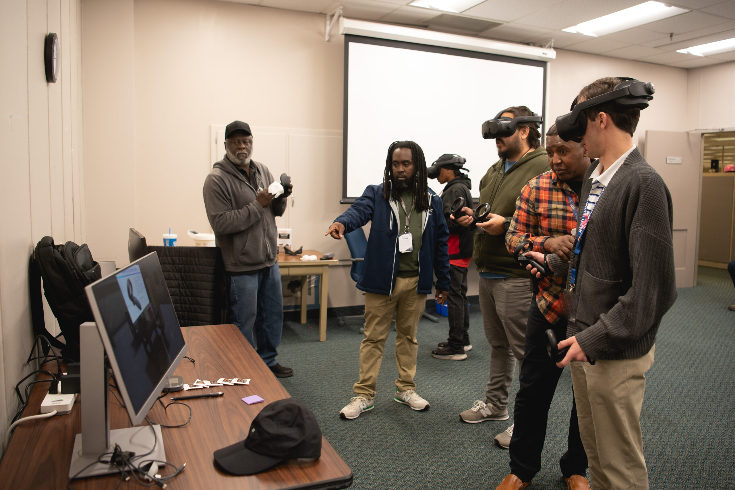 The demonstration was held in Bldg. 600 and made available to employees there. Participants donned headsets and used hand controllers for a 3D experience under the guidance of trainers. They were required to pick up objects and pay attention to equipment tags.